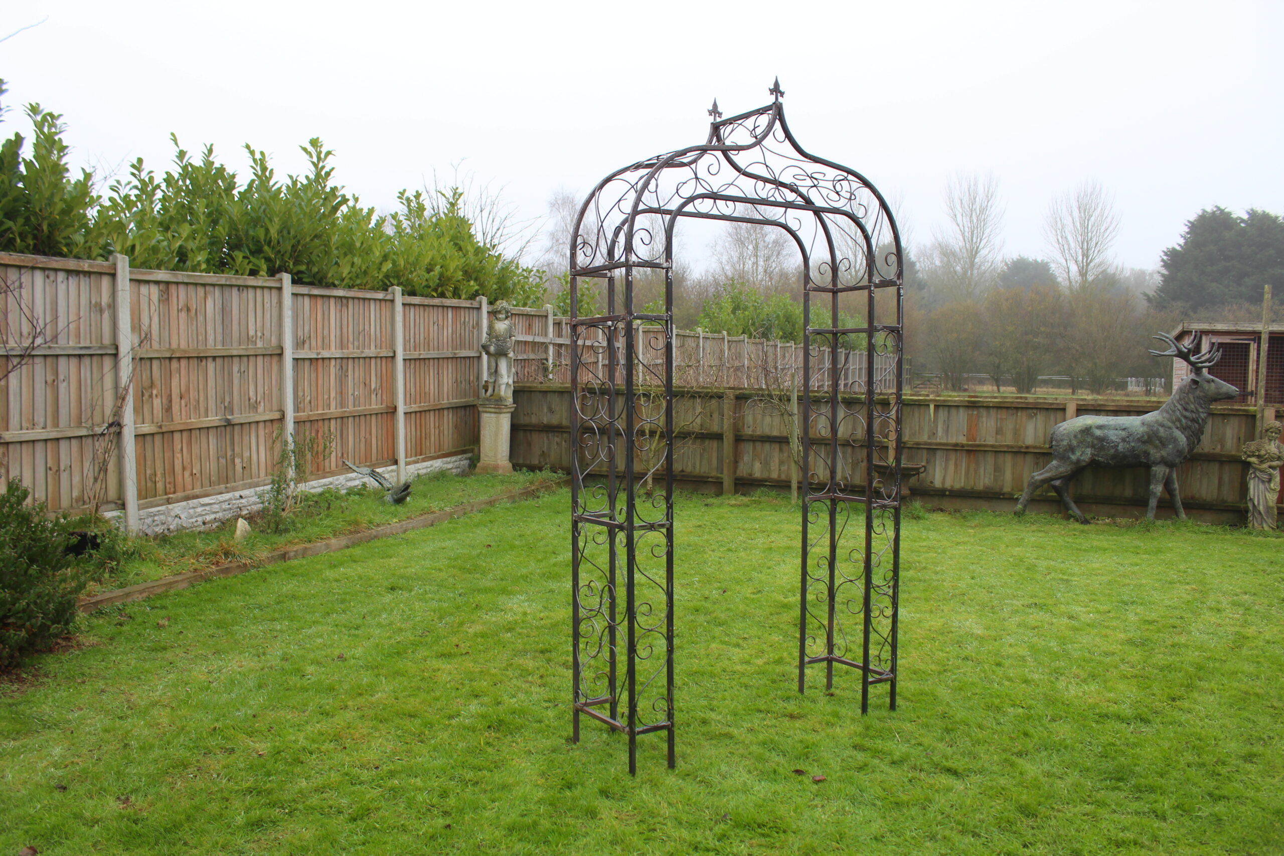 Rustic finish arrives pre-aged to give an authentic rust effect that blends beautifully into your garden. The finish is like any natural rusted metal and care should be taken initially as the rust may transfer onto clothes and furnishings.